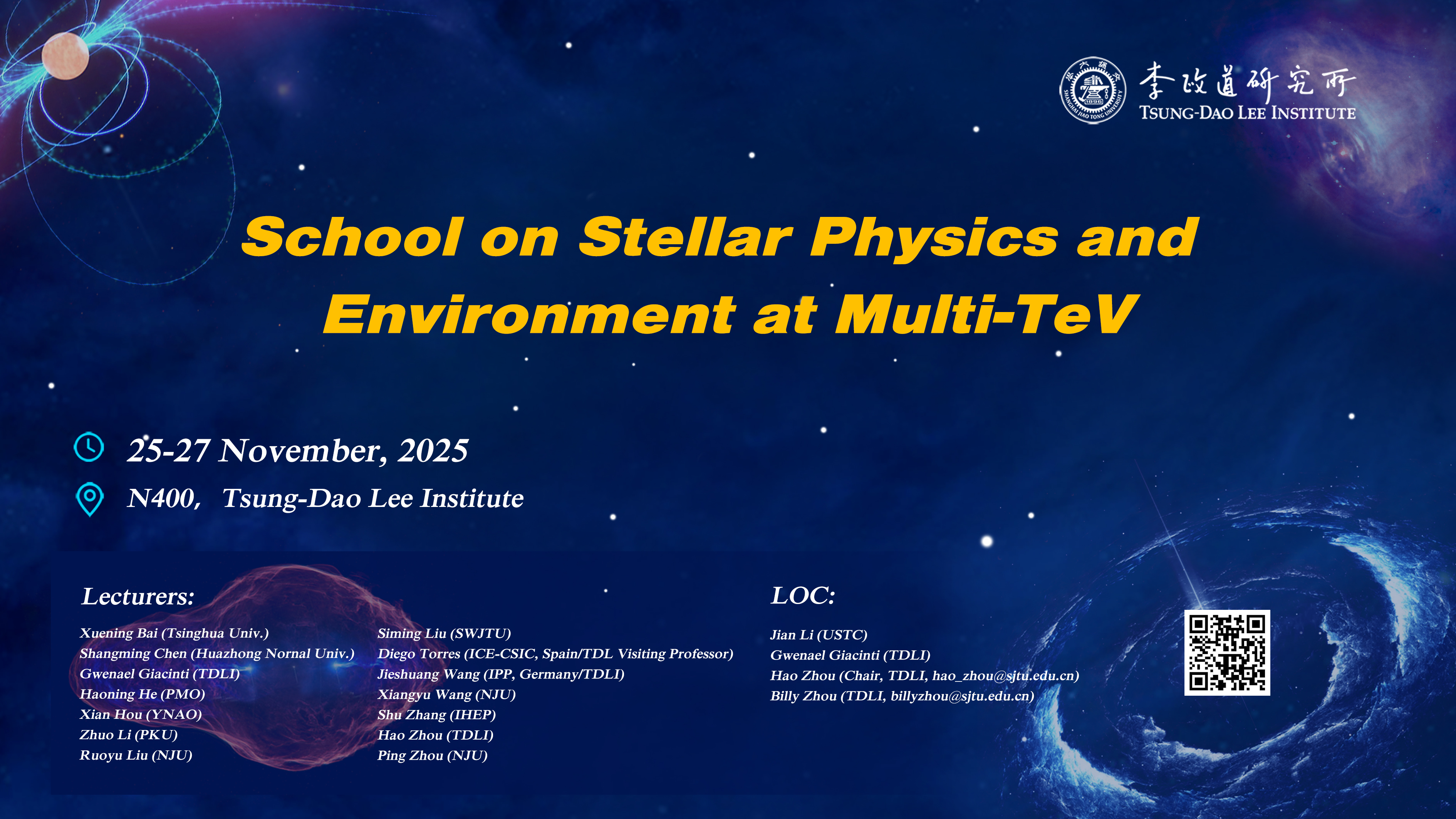 We are pleased to announce the school on "Stellar Physics and Environment at Multi-TeV" to be hold at TDLI in Shanghai, China. The school is appropriate for graduate students and junior postdocs in the field of high-energy/particle astrophysics. All attendees are strongly encouraged to give a 3-min flash talk on their own research.